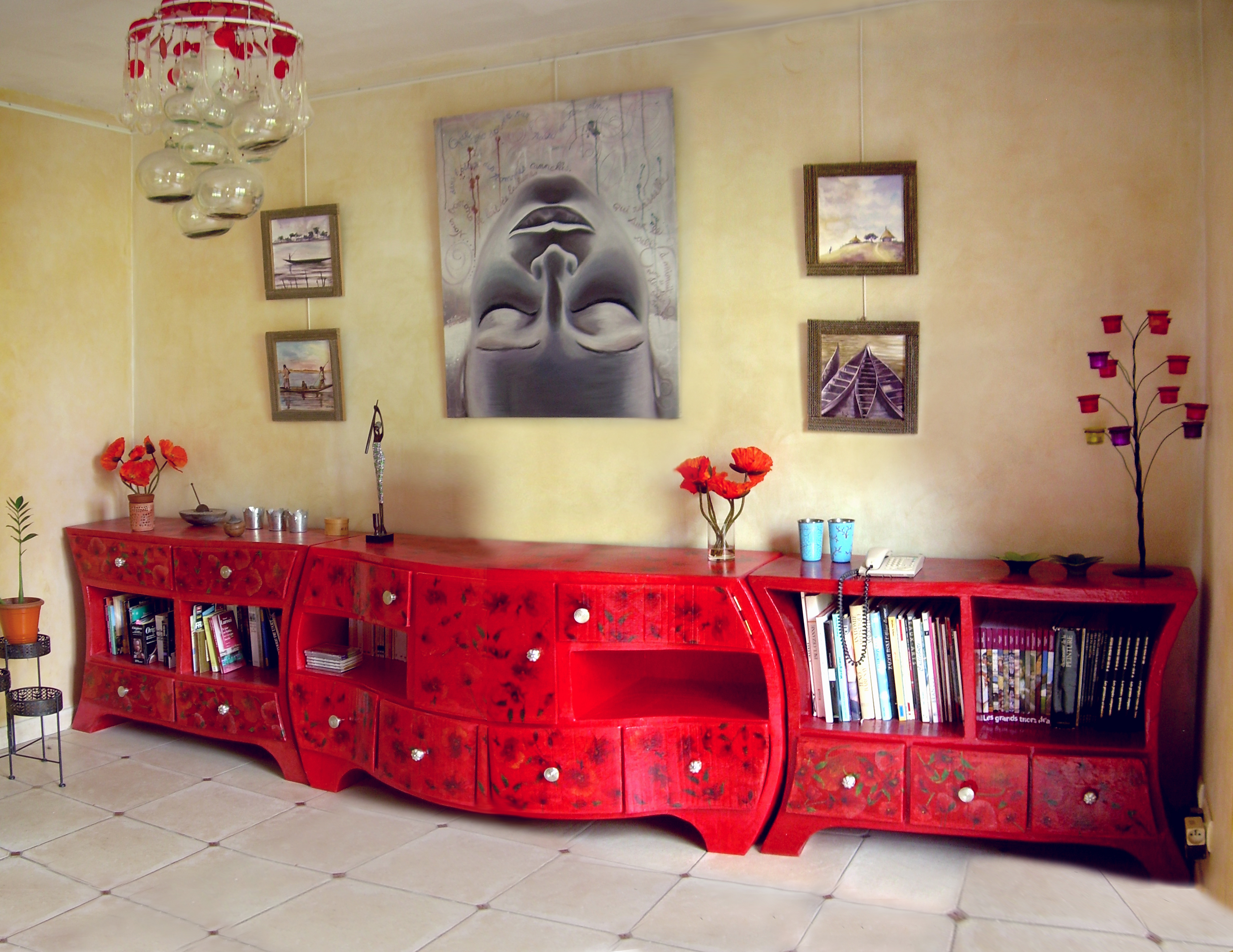 Puis l’envie rejaillit, et la motivation à peindre n’en devient que plus forte. En 2001, elle renoue avec ce souffle créatif et s’investit dans ses œuvres avec passion. Trois années plus tard, elle fonde Toulaba, c’est ici, un espace de convivialité et de transmission, sa maison/atelier où l’on peut acheter ses objets, ses œuvres, et apprendre !