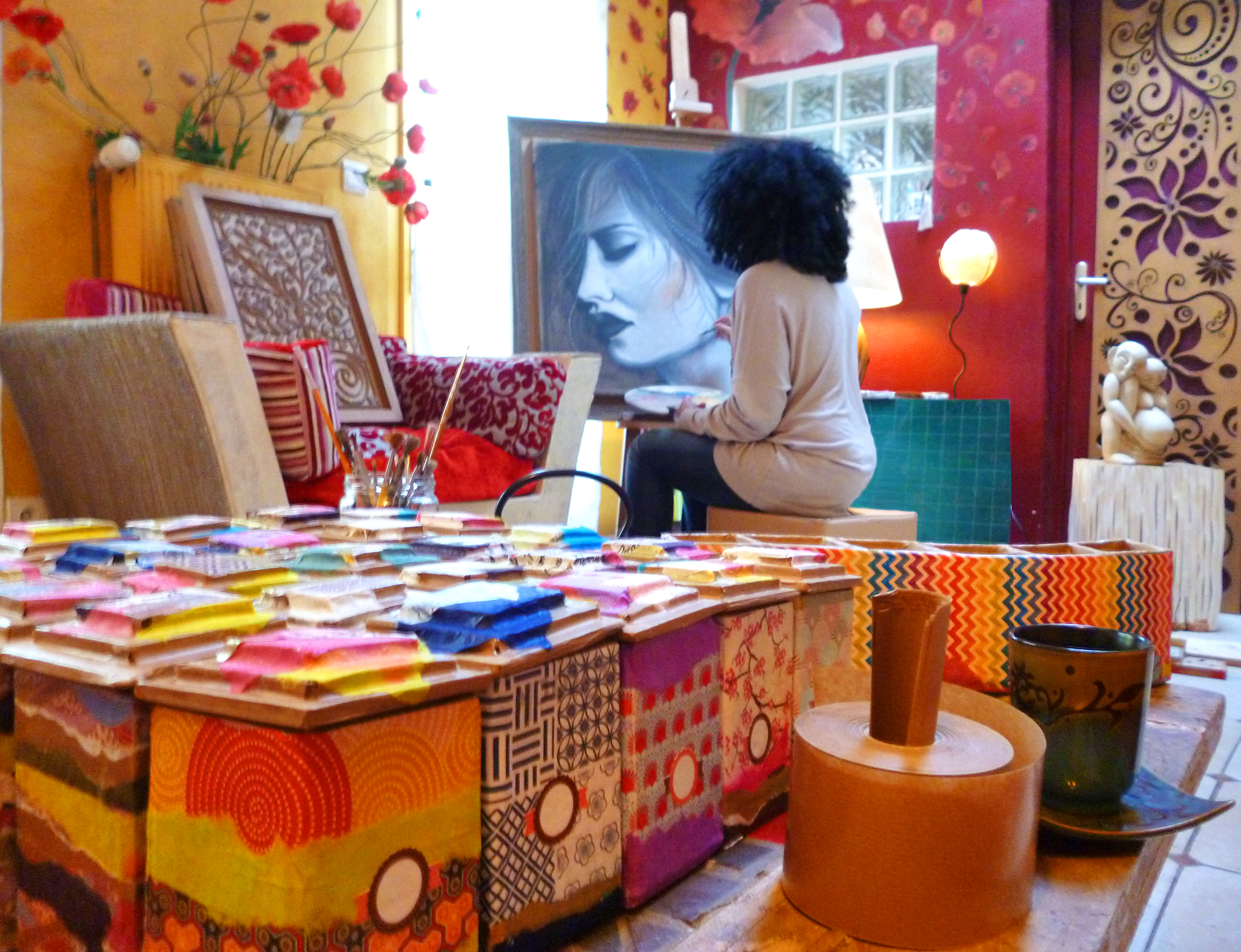 Forte de sa carrière d’artiste peintre et plasticienne, elle lance son propre atelier d’artiste nommé « Toulaba, c’est ici» ; un espace de convivialité et de transmission, un atelier où l’on peut acheter ses objets, ses œuvres, mais aussi apprendre des techniques de peinture, collage, assemblage…