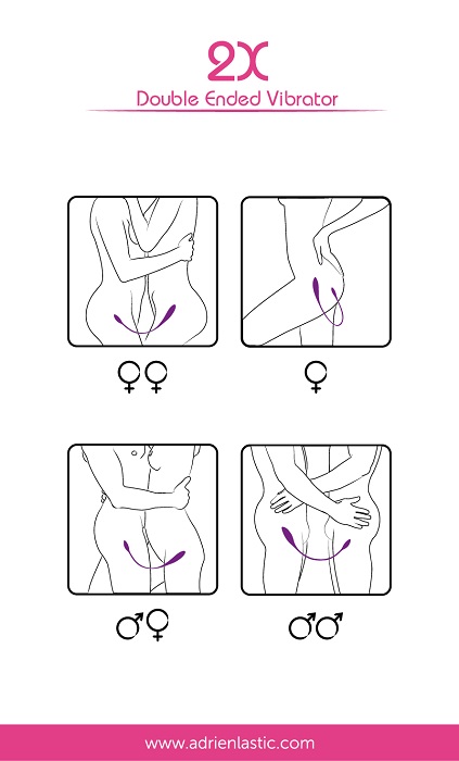 - Le double vibromasseur 2X : Silencieux et très polyvalent, ce vibromasseur peut être utilisé par les couples gays, lesbiens et hétéros. Possédant dix niveaux d’intensité et contrôlable par télécommande, ce sextoy peut être complété avec des gaines interchangeables (dont une incluse), pour différentes sensations et utilisations : Stimulation du Point G, du Point P, Plug Anal…