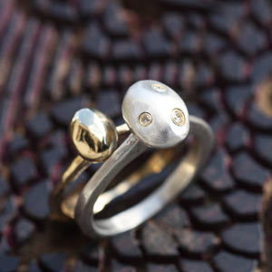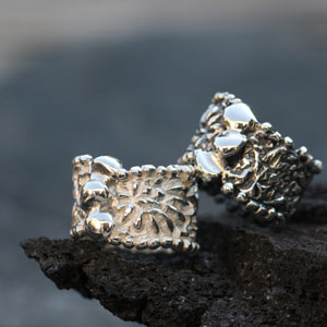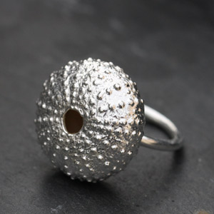 A gauche – Bague oursin réalisée en argent massif à partir d’un véritable oursin !