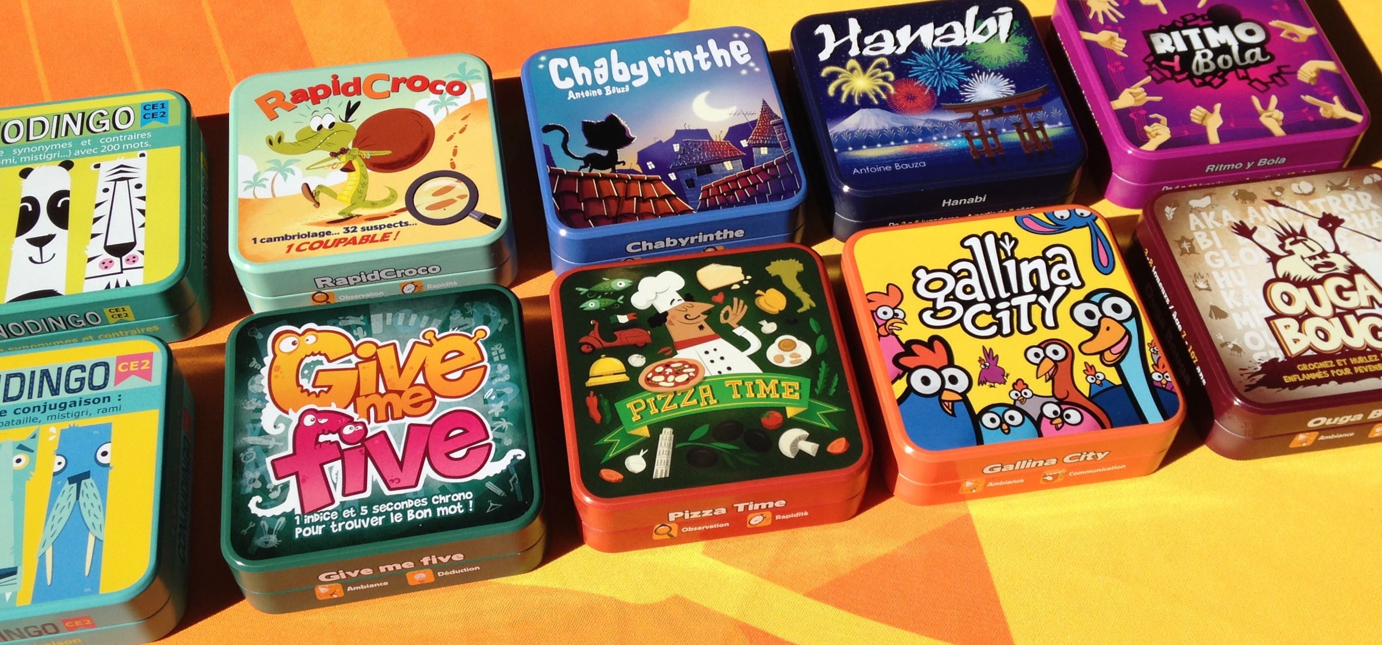 Une jolie petite boite en métal, une idée originale (et brillante tant qu’à faire), des règles faciles à comprendre (en moins de deux minutes s’il vous plaît !), des cartes au graphisme original, des jeux plus rigolos les uns que les autres : Cocktail Games n’a pas son pareil pour éditer des jeux qui réunissent petits et grands pour de bons moments partagés !