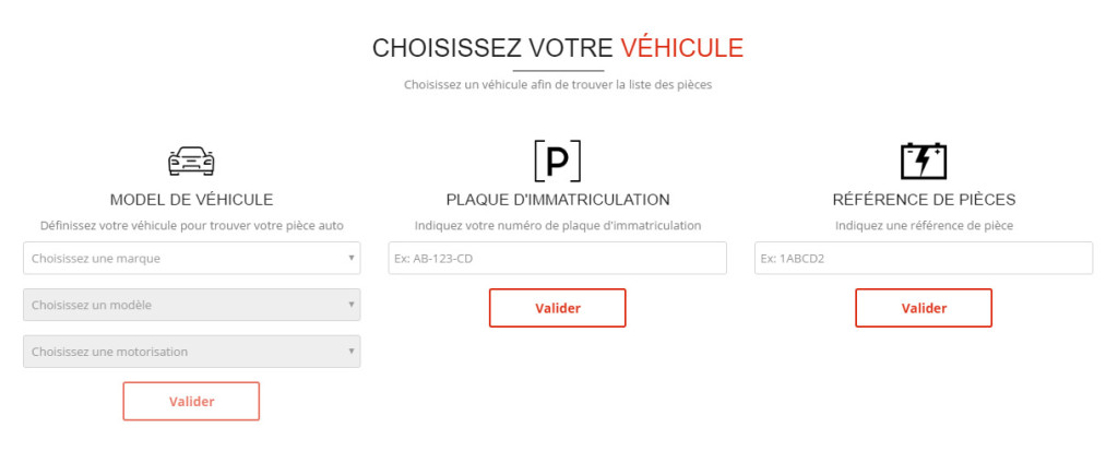 - Recherche des pièces par véhicule (VL/VU/PL ou VL et VI (véhicules industriels)