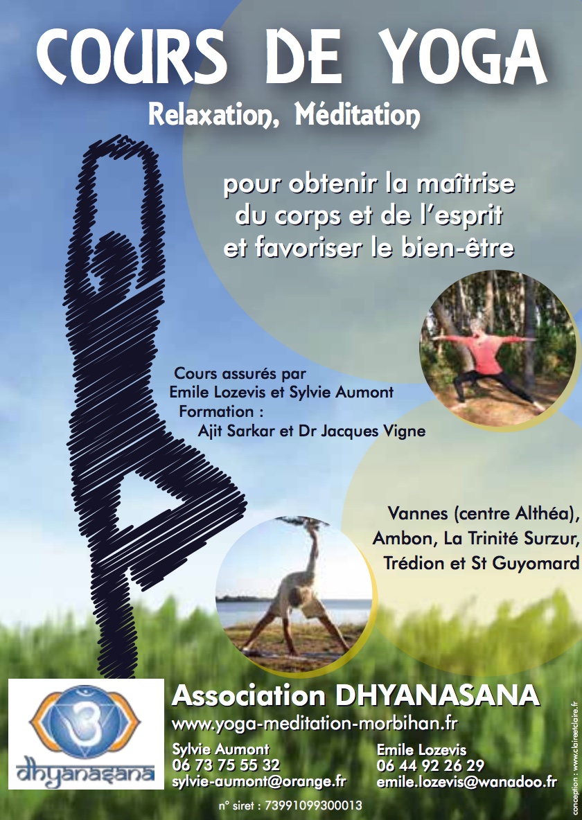 L’association dhyanasana se donne pour mission de diffuser les techniques de yoga dans le Morbihan et au-delà par son activité d’enseignement. Dirigé par Emile Lozevis et Sylvie Aumont, le centre dhyanasana organise des cours de méditation, de yoga et de relaxation pour adultes et enfants.