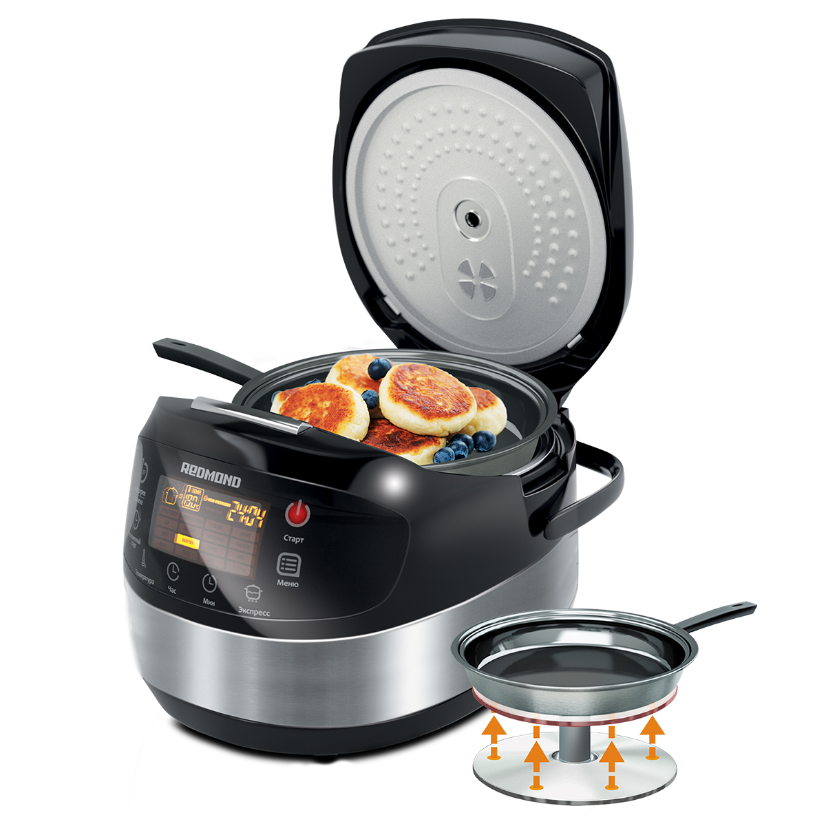 - Confort. Les multicuiseurs Redmond permettent de cuisiner des plats de grande qualité, sans surveillance. Leur écran LCD lumineux et leur panneau de commande sont pratiques à utiliser, et ils possèdent des fonctions temporisation et maintien au chaud. Ils sont par ailleurs tous livrés avec un livre de 100 recettes.