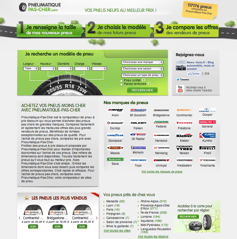 Grâce à un moteur de recherche multicritères (taille, saison, marque, type de véhicule et spécificité), les utilisateurs de Pneumatique-pas-cher.com peuvent comparer et choisir en toute transparence le vendeur et l’offre adaptés à ses besoins et à son budget.