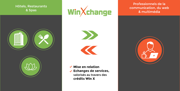 C’est dans ce contexte que Dina Fawaz a eu l’idée de fonder Win Xchange, le 1er site d’échange de services entre professionnels de l’hôtellerie – restauration – bien-être et ceux de la communication, Web & multimédia. Il est désormais possible d’échanger la création d’un site web, l’animation de réseaux sociaux … contre des nuits d’hôtels, des repas ou des soins !