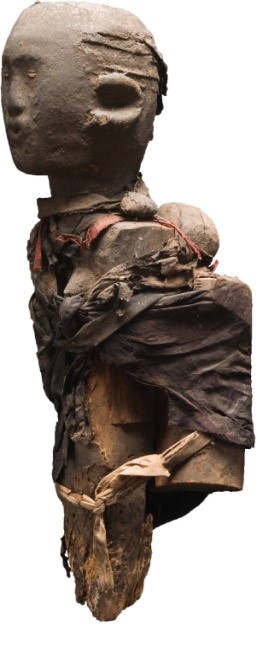 Tous les objets présentés ont été utilisés dans des pratiques religieuses : culte des ancêtres, médecine, divination, sorcellerie ou autres évènements liés aux grandes étapes de la vie.