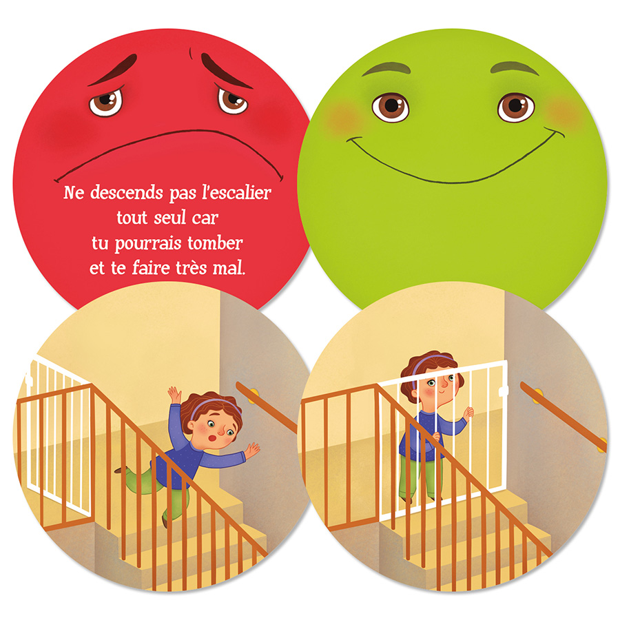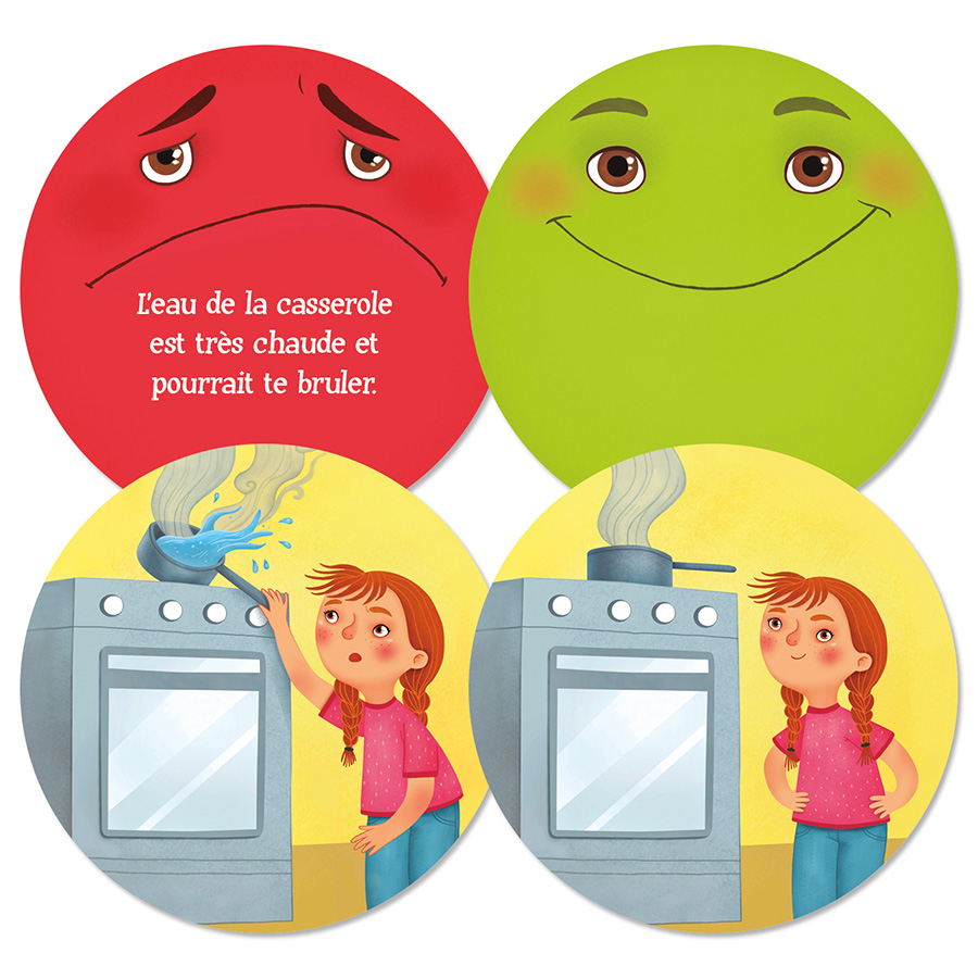 Ils doivent expliquer pourquoi la situation est dangereuse (ex : C’est dangereux parce que la petite fille touche à la casserole et va se brûler) ou ne l’est pas (ex : la petite fille ne touche pas la casserole). L’enfant peut ainsi parler avec ses mots, interpréter, s’exprimer. Toute la richesse du jeu est dans la verbalisation et l’échange.