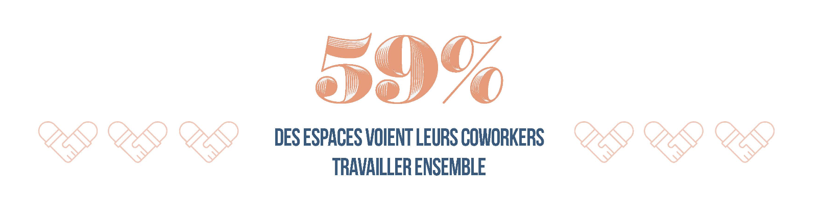 59 % des espaces coworking voient leurs coworkers travailler ensemble.