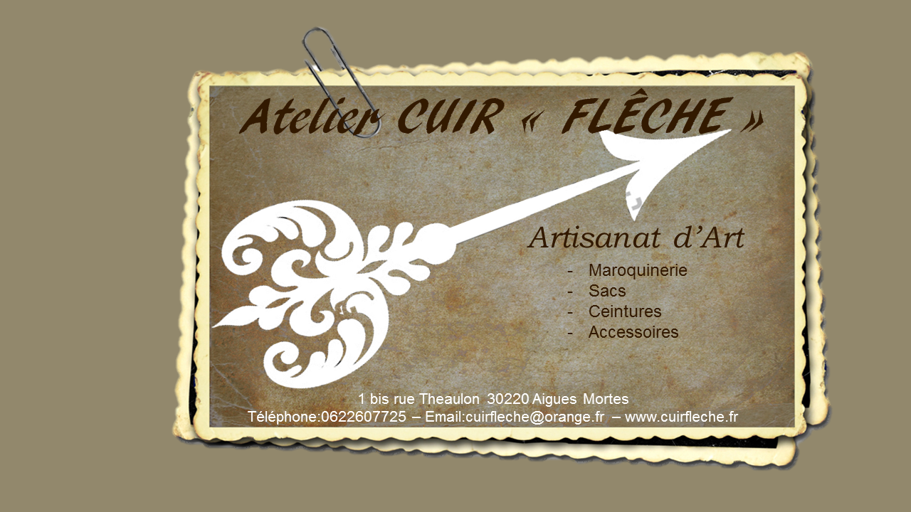 L’atelier « Flèche » se situe au cœur même des remparts d’Aigues Mortes et propose des pièces en cuir uniques, réalisées sur place. Sacs, ceintures ou autres accessoires, le cuir se met dans tous ses états, revêt toutes les couleurs et prend toutes les formes pour satisfaire les clients : sages, traditionnels ou visionnaires.