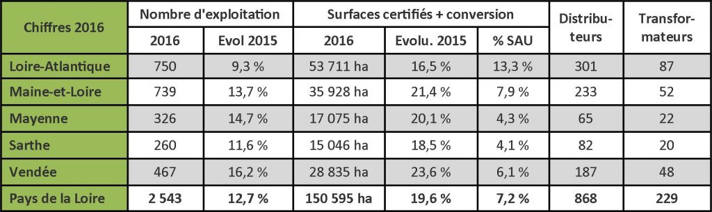 Dans la région des Pays de la Loire, l’agriculture biologique connaît également un véritable essor avec :