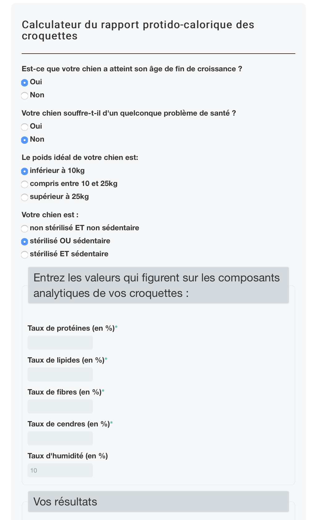 Et bonne nouvelle, les propriétaires disposent gratuitement sur Toutoupourlechien.com d’un calculateur inédit de RPC, celui nécessaire à leur chien, et celui des croquettes qu’ils souhaitent analyser ! En quelques clics, ils peuvent ainsi comparer très facilement et rapidement ces deux RPC et savoir si les croquettes sélectionnées sont adaptées aux besoins de leur animal.
