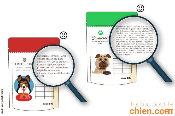 Toutoupourlechien.com apprend au fil de sa méthode à décrypter les étiquettes des croquettes à travers deux points essentiels :
