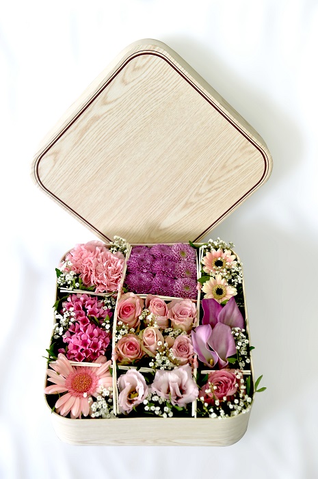 La boîte florale est aussi très décorative, notamment lorsque le coffret est placé en centre de table.