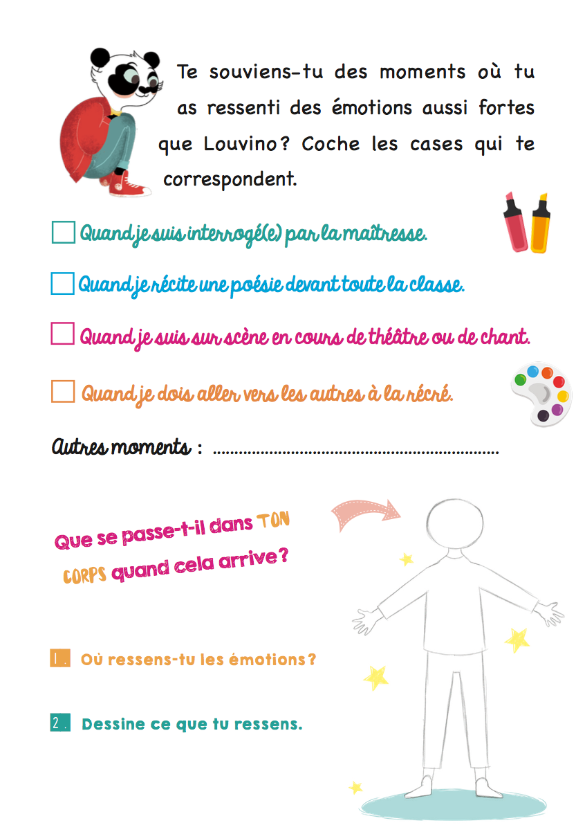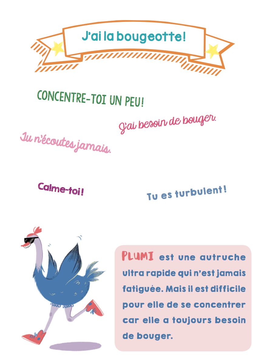 - La série de « livractivités » : une suite d’histoires illustrées et couplées à des activités à faire seul et/ou en famille (lecture aidée pour les 6-7 ans et en autonomie pour les 8-10 ans), pour mettre en place des rituels simples et positifs pour s’amuser, muscler son bien-être et s’inspirer. Chaque tome offre une panoplie d’outils aux enfants pour aborder les situations du quotidien : gérer ses peurs, comprendre ses émotions, découvrir les autres, croire en soi, persévérer… En suivant les aventures des personnages et en faisant les activités proposées, les enfants découvrent leurs forces et boostent leur confiance en eux.