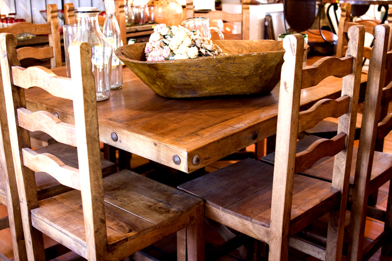 En bois exotique neuf, les meubles font honneur au Mesquite, un matériau très dense et imputrescible. Offrant de très belles nuances ambres, il est d’ailleurs possible de faire réaliser des meubles sur-mesure et de demander à conserver la forme naturelle et les nœuds du bois.