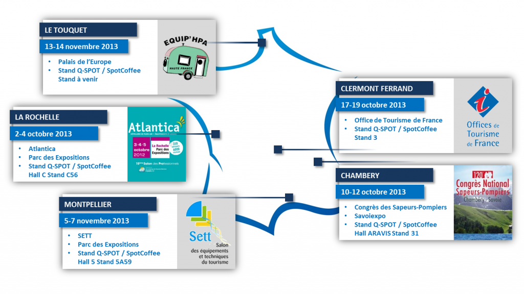 Avec une participation active à 5 salons et congrès pour ce seul trimestre, Q-SPOT sillonne la France, toujours soucieux d’être au plus proche de ses revendeurs et clients et garantir un maximum de convivialité dans leurs relations.