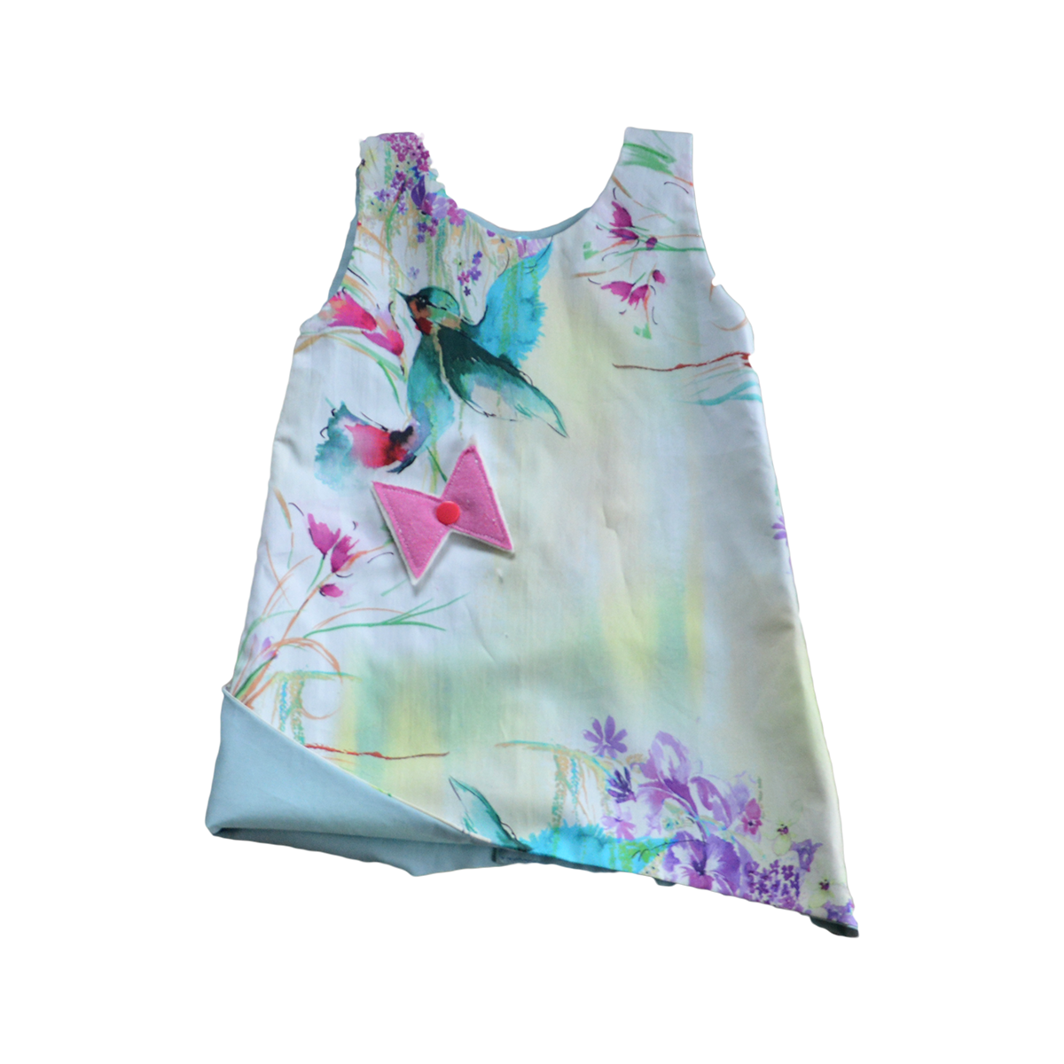 Les robes évasées sont ajustables en longueur grâce aux boutons pression situés au niveau des épaules et aux pans de la robe. Elles se portent facilement avec un t-shirt, un sous-pull, un gilet sans manches et aussi sur un sarouel.