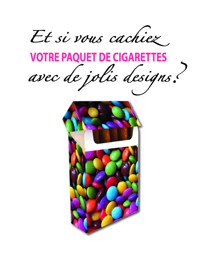 L’étui pour paquet de cigarettes permet de cacher les images et messages désagréables qui ornent les paquets de cigarettes et de reconnaître facilement le sien, tous les paquets étant désormais identiques.