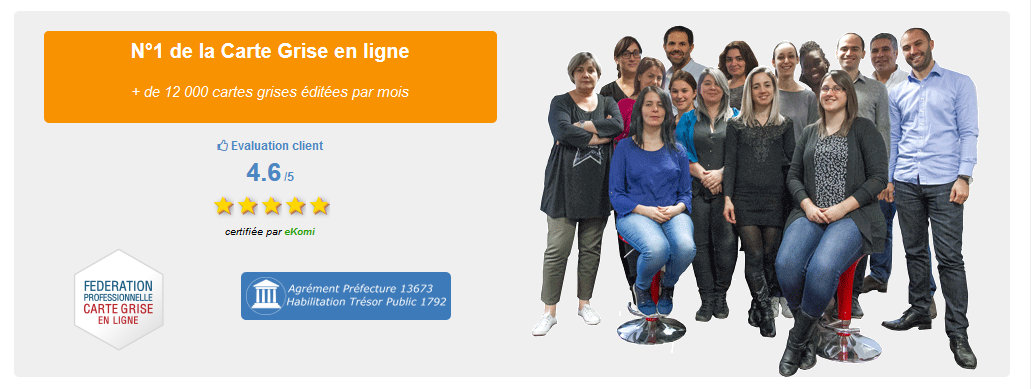 Avec plus de 26 000 avis positifs et une note moyenne de 4.6/5 – certifié par eKomi – Cartegriseminute.fr est un site fiable, rapide et compétent qui permet d’obtenir sa carte grise en ligne en quelques clics.