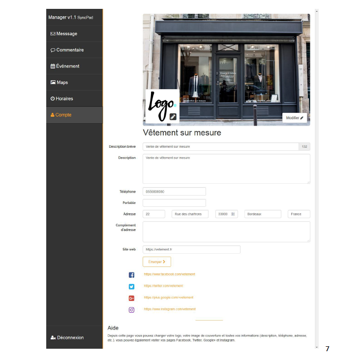 La première à 19,99 €HT/mois qui permet de profiter de l’application SyncPad Manager et d’avoir ainsi des messages publiés simultanément sur Facebook, Twitter, Google Plus et Instagram. Syncpad crée les pages sur les différents médias et les entreprises bénéficient d’une formation pour apprendre à créer du contenu sur les réseaux sociaux. Les entreprises peuvent ensuite poster des messages, créer des événements, gérer ses images sur Google Maps et prendre la main sur les informations de ses comptes depuis la même application.