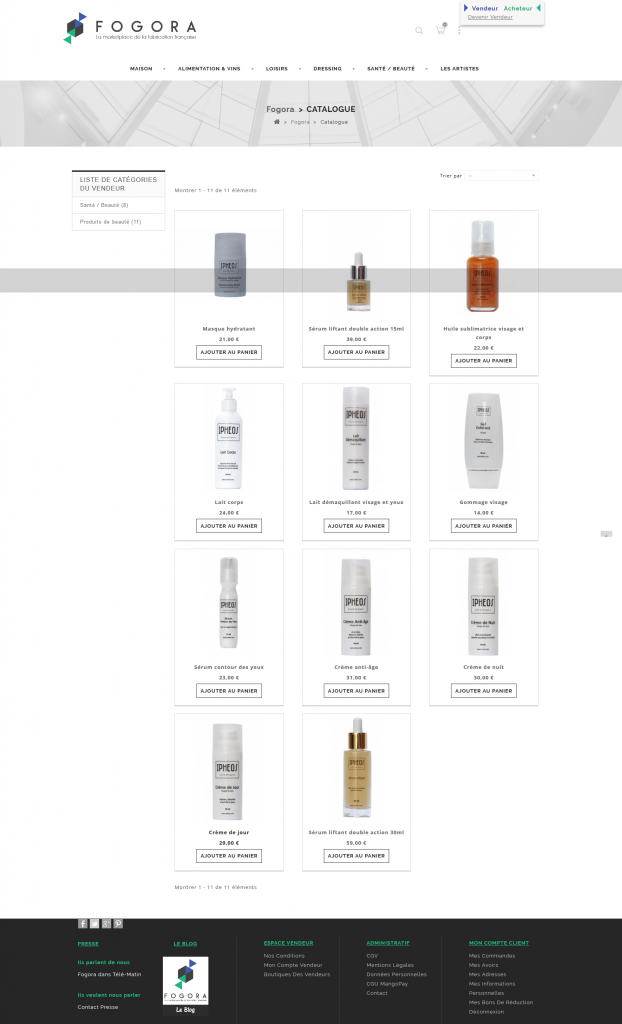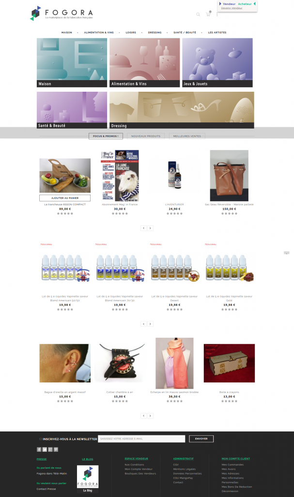 Fogora est donc une marketplace « pure player », soit une plateforme de promotion, de mise en relation, qui assure chaque paramètre de la transaction de vente entre un commerçant et son client final. Chaque inscription de professionnel est vérifiée par la fondatrice, dans le respect des lois françaises et dans un souci de qualité des produits.