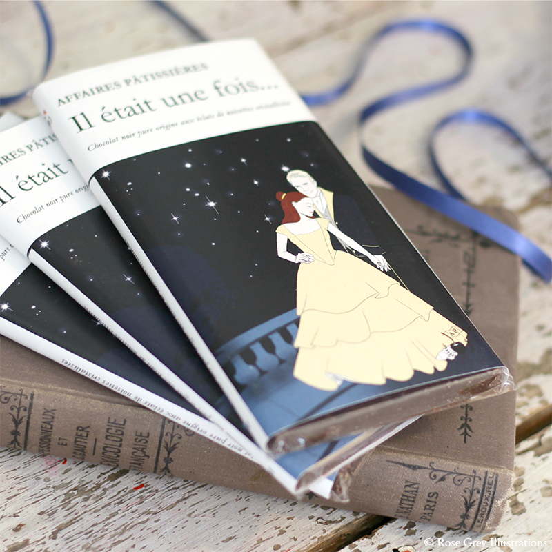 Les premiers emballages originaux de tablettes sont nés d’échanges avec la communauté Affaires pâtissières. Celle-ci compte parmi ses fidèles ambassadeurs des talents comme Rose Grey Illustrations, qui a réalisé deux visuels évoquant les contes de notre enfance comme La Belle et la Bête ou La Petite Sirène.