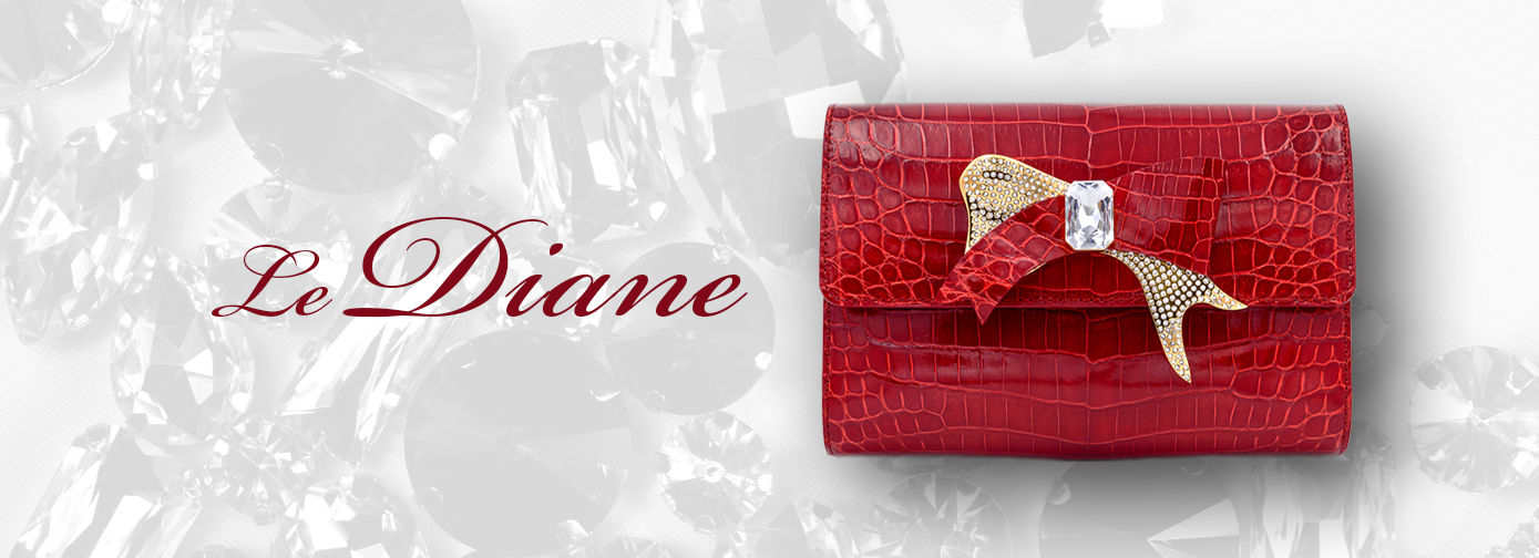 La pochette Diane est un modèle délicat dont le fermoir bijou s’allie avec son revers en cuir précieux ou dans une peausserie exotique toute aussi raffinée.