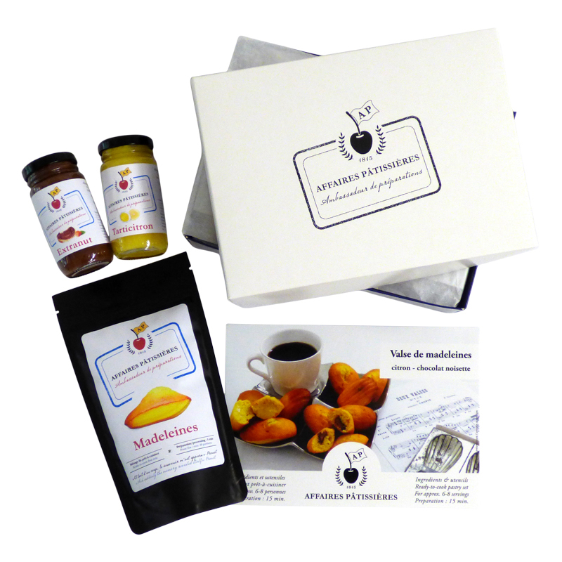 Pour rendre hommage à cette gourmandise raffinée, Affaires pâtissières a choisi d’en faire le fil conducteur de deux de ses nouveaux coffrets prêts à cuisiner : Valse de madeleines et L’Heure du thé.