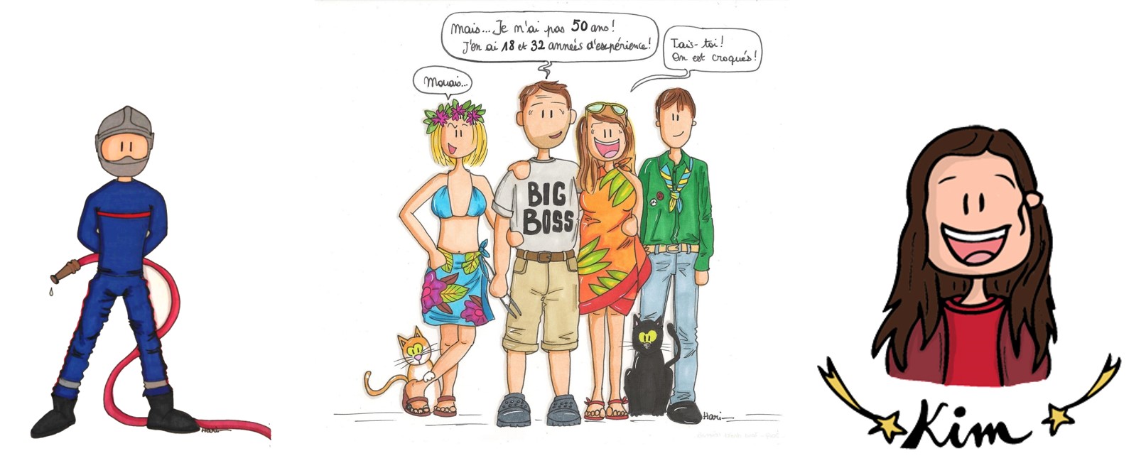 Un cadeau génial et décalé ! Ces portraits couleurs, en buste ou en pied, de 1 à 5 personnages, avec ou sans bulles de parole, sont dessinés à la main dans un style joyeux et dynamique.