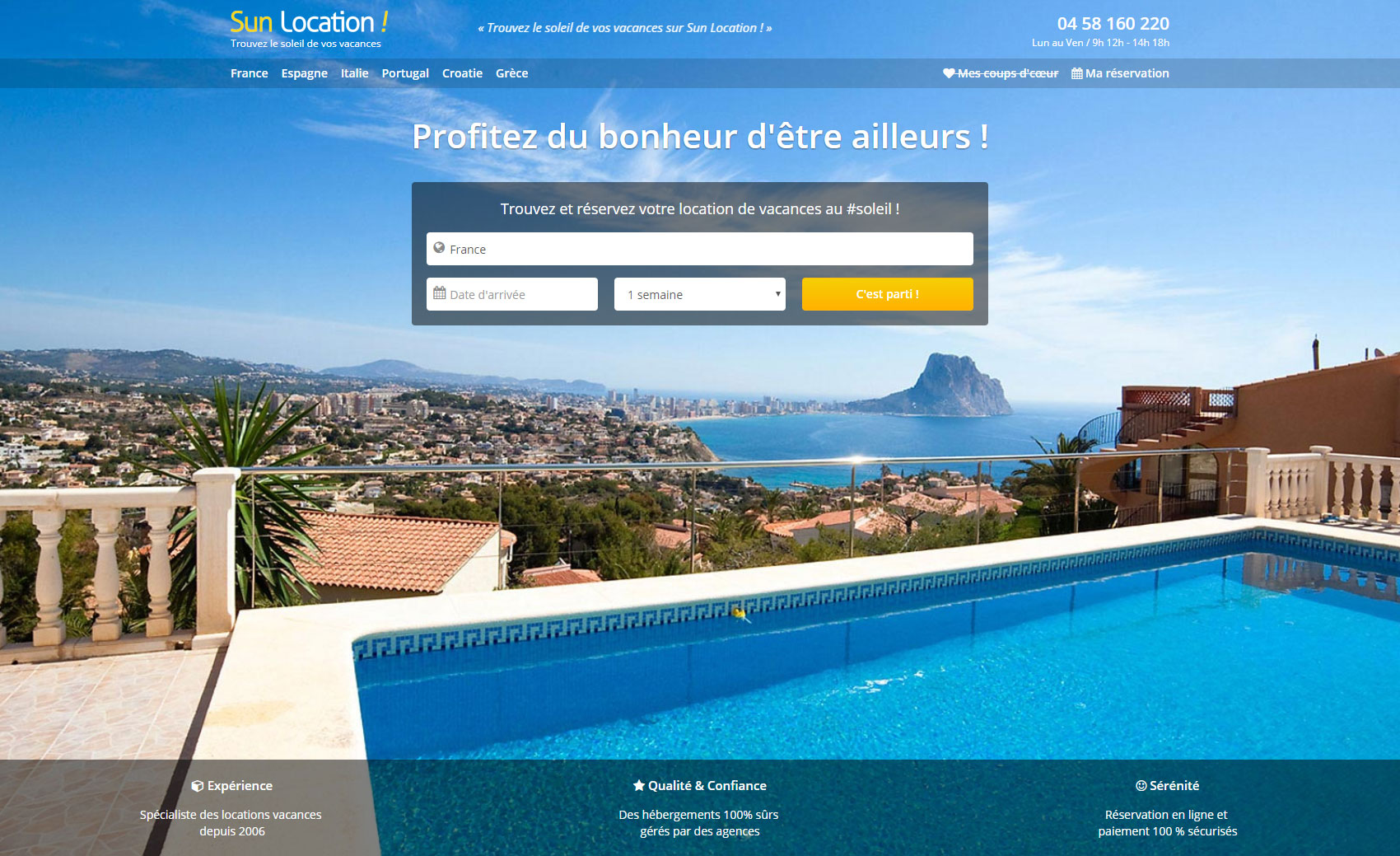 En ne proposant que des locations de vacances gérées par des professionnels du tourisme fiables et reconnus, Sun Location évite à ses clients de tomber dans les pièges et arnaques de la location de vacances qui peuvent apparaître sur les sites de petites annonces de particuliers à particuliers. La longévité de la plateforme témoigne de sa fiabilité : Sun Location existe depuis 2006, et propose un solide catalogue de locations.
