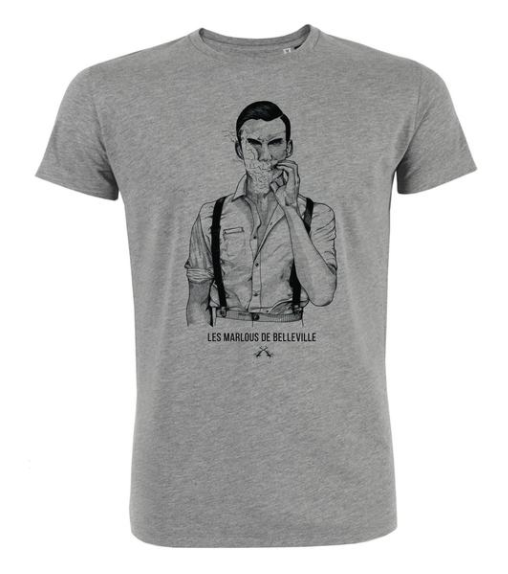Ce t-shirt, qui se décline en version blanc et gris chiné, est fait à 100 % de coton bio. Résistant et confortable, il a un toucher très doux et agréable. Le beau dessin du Marlou a été réalisé par Charles Addad.