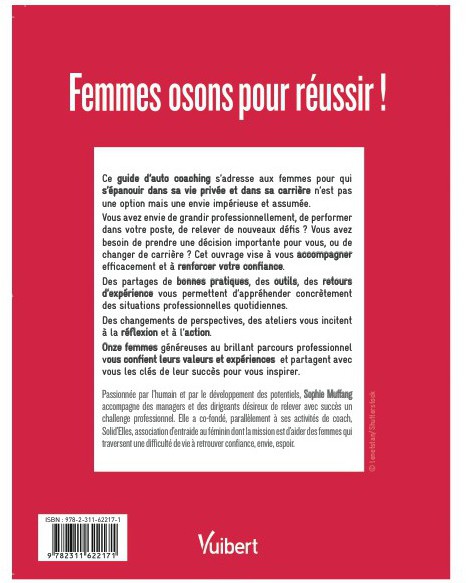 Executive coach, spécialiste de l’accompagnement au changement, et co-fondatrice de l’association d’entraide au féminin Solid’Elles, Sophie Muffang publie aux éditions Vuibert Femmes : osons pour réussir ! Le guide d’auto-coaching pour réussir dans son job.