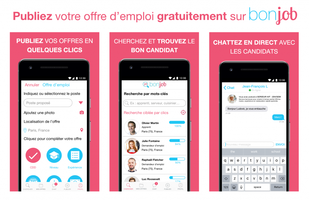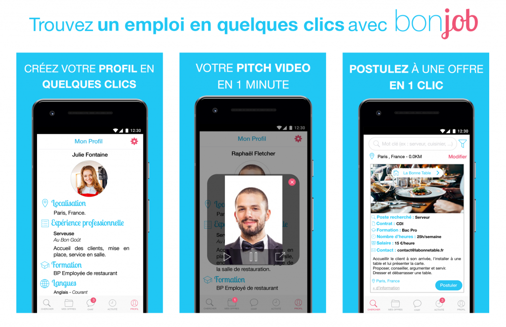 BonJob est la première application à répondre exactement aux problématiques de recrutement du secteur de l’hôtellerie–restauration.