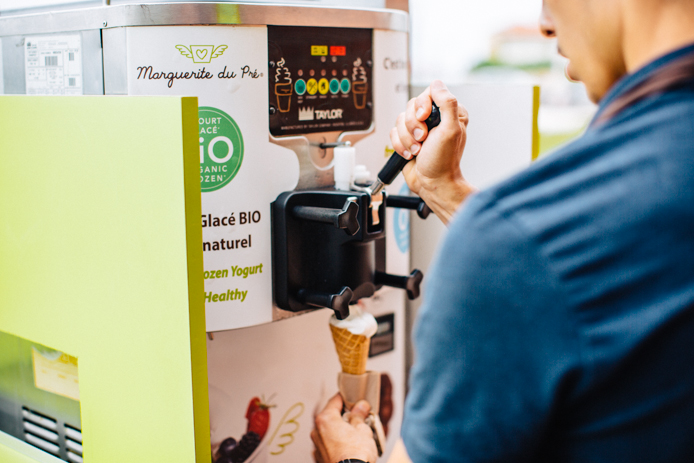 - Ils sont “interactifs” : les gourmands sont invités à choisir leurs Délices BIO, c’est-à-dire les ingrédients qui garniront leur yaourt glacé. Les possibilités sont infinies ! De plus, la création de la composition du yaourt glacé et des Délices est en elle-même un mini-show puisqu’il est fabriqué à la minute devant leurs yeux.