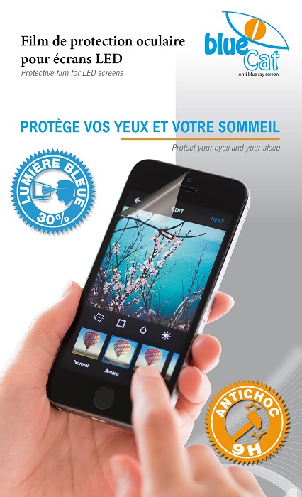 L’équipe de BlueCat Screen™ a alors effectué des recherches pour arriver à une solution totalement nouvelle : un film révolutionnaire, de qualité optique, qui crée un filtre bloquant la lumière bleue et préservant les couleurs, à appliquer sur tous les écrans (smartphones, tablettes, etc.).