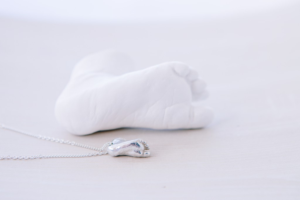 Septine & Co, c’est avant tout un savant procédé de moulage et de fonderie. La marque permet à tous ceux qui le souhaitent de porter en bijou une miniature du pied ou de la main de leur enfant. Un pendentif en or ou en argent, sobre, élégant et original, qui les accompagnera tout au long de leur vie.