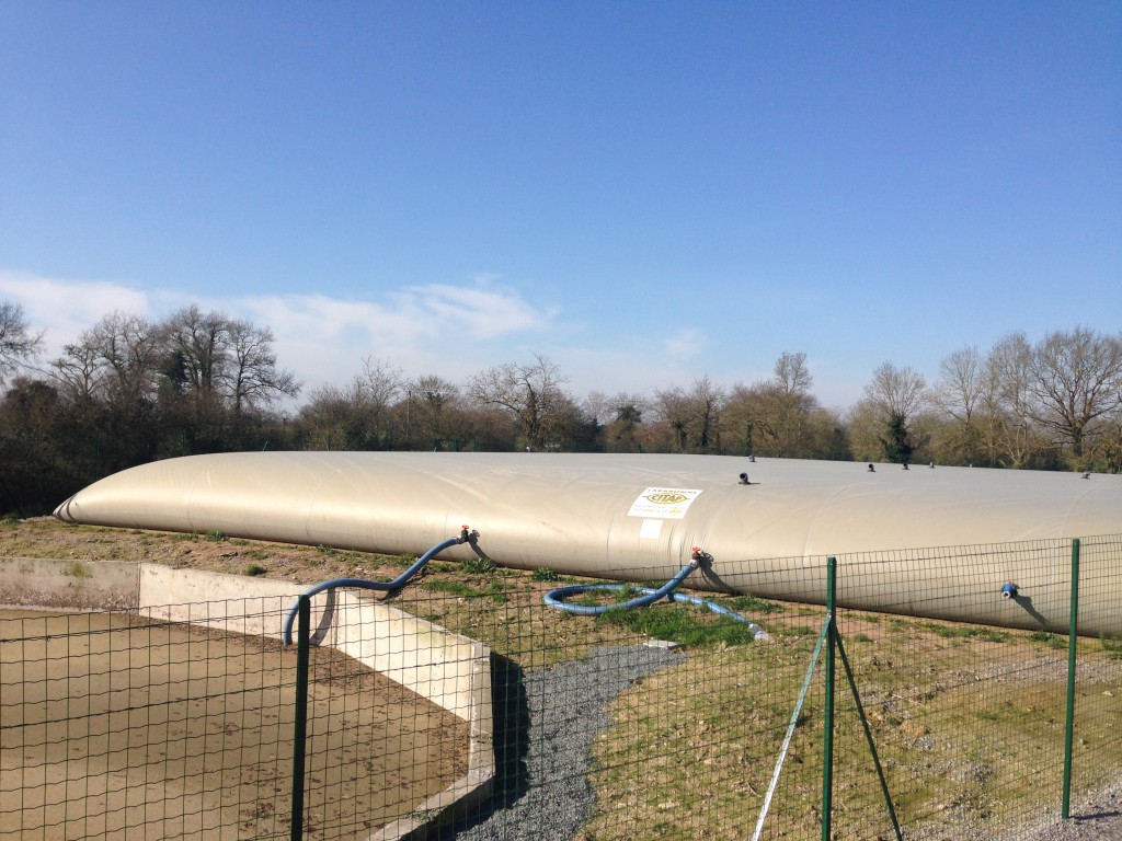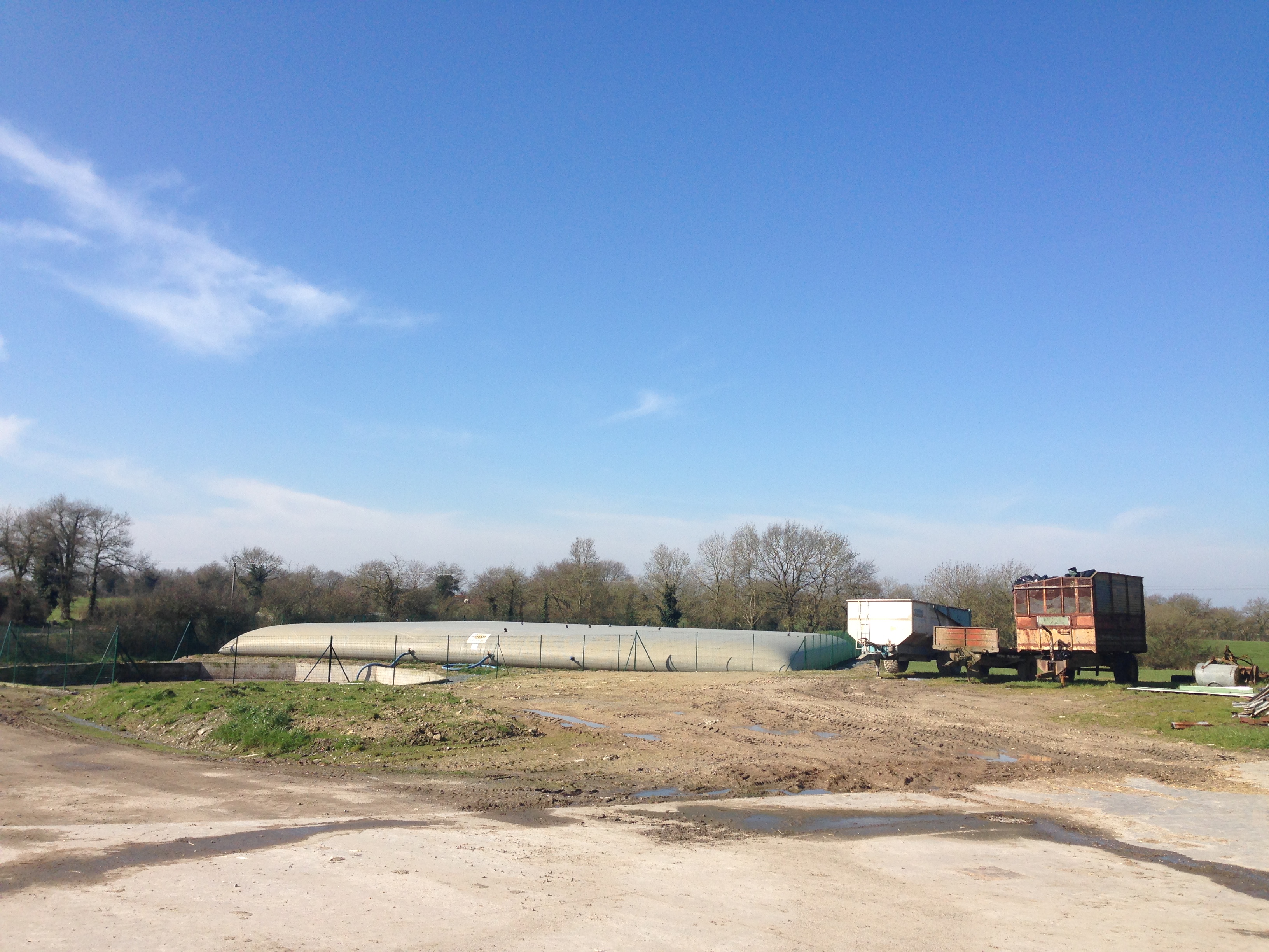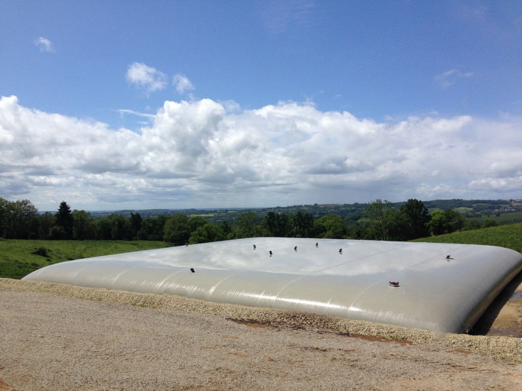 Récemment, cet agriculteur s’est heurté à un problème de stockage : les cuves béton de son unité de méthanisation n’étaient plus suffisantes pour stocker le digestat – résidu du processus de méthanisation. Pour répondre à ses besoins, il fallait donc envisager la construction d’une nouvelle cuve de 6m de haut. Les services de l’environnement ne lui ont cependant pas donné l’autorisation. En cause : un impact paysager trop important. Pour pallier à ce refus, il s’est alors mis en quête d’une autre solution.