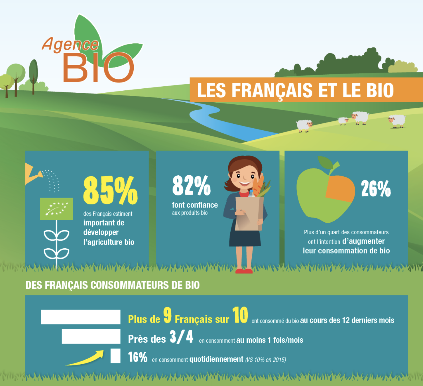 Plus de 9 Français sur 10 (92%) déclarent avoir consommé des produits biologiques en 2017.