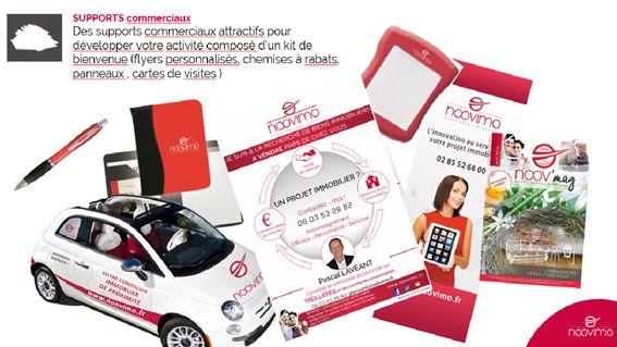 Un kit de supports commerciaux (flyers personnalisés, chemises à rabat, panneaux, cartes de visite) est fourni pour que l’activité débute dans de bonnes conditions.