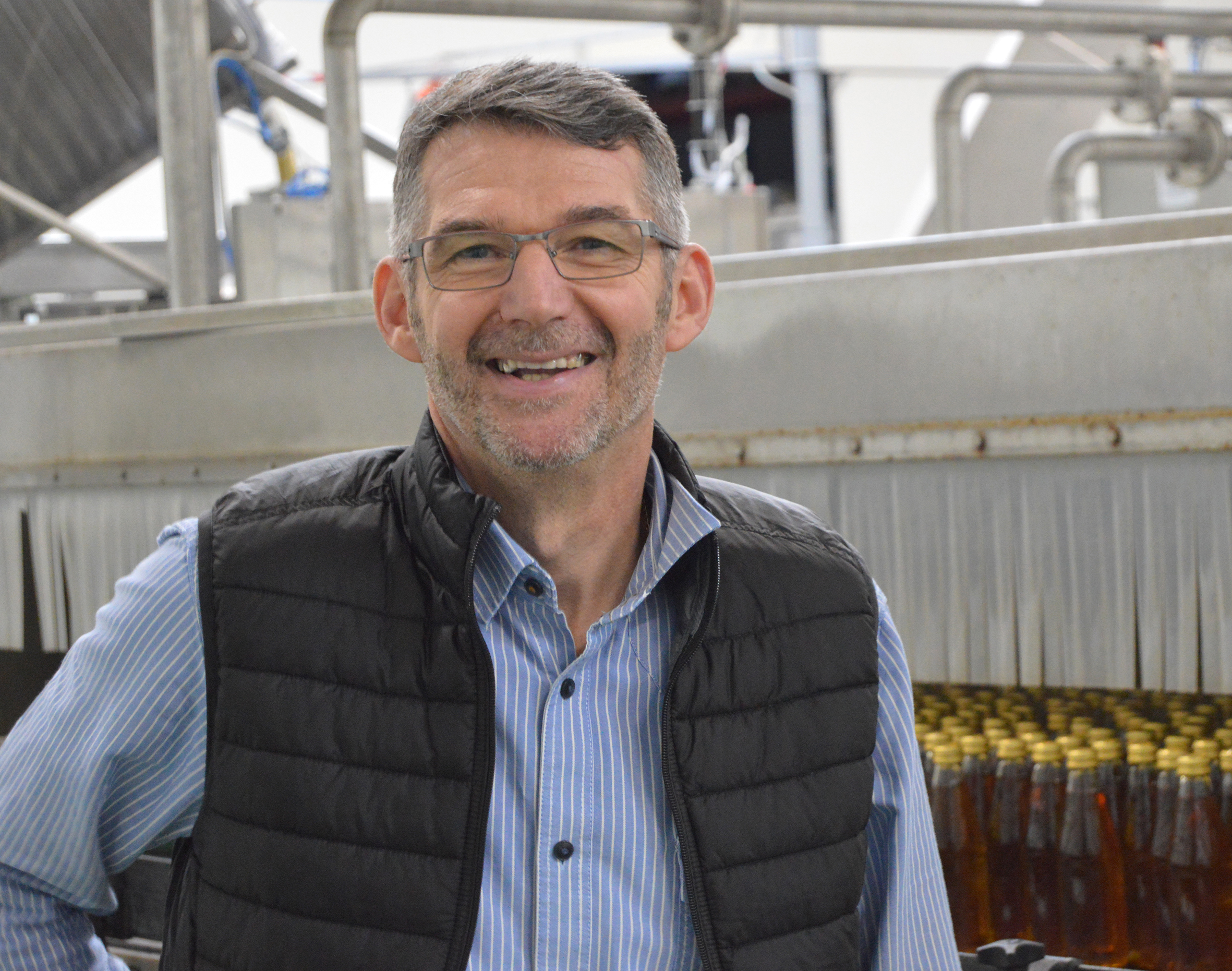 L’idée de créer une gamme de boissons à base de fruits lui est venue au début des années 2000, alors qu’il s’occupait de ses 20 hectares de verger. Même si tous les fruits étaient cueillis à la main, certains, trop petits, trop gros ou trop déformés, n’arrivaient jamais sur les étals de supermarché. Alain a donc décidé de les utiliser pour fabriquer un jus de pomme naturel.