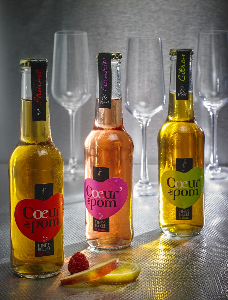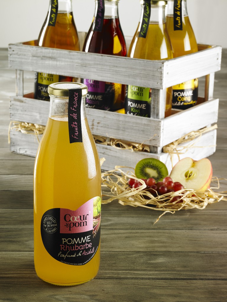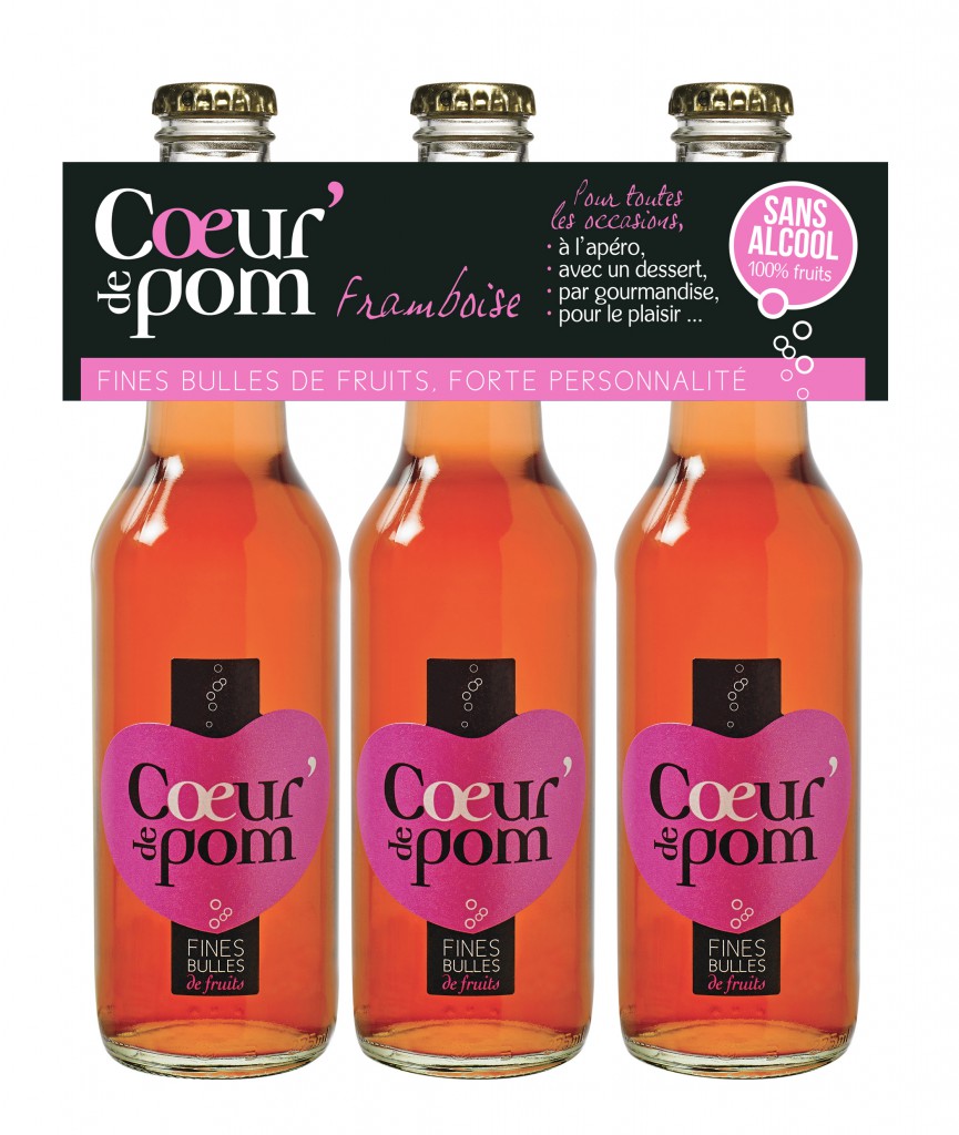 Cœur de Pom’ est une marque de jus de fruits destinés à toute la famille. À côté des pétillants de fruit, elle propose des purs jus de pommes multivariétaux et monovariétaux, mais aussi des jus de raisin et de pruneaux ainsi que des assemblages : pomme et poire, pomme et rhubarbe, pomme et coing, et pomme et raisin. Les jus sont disponibles en format classique de 1 litre, en format familial de 3 litres (bag in box) et maintenant en petites bouteilles de 27,5 centilitres pour les pétillants.