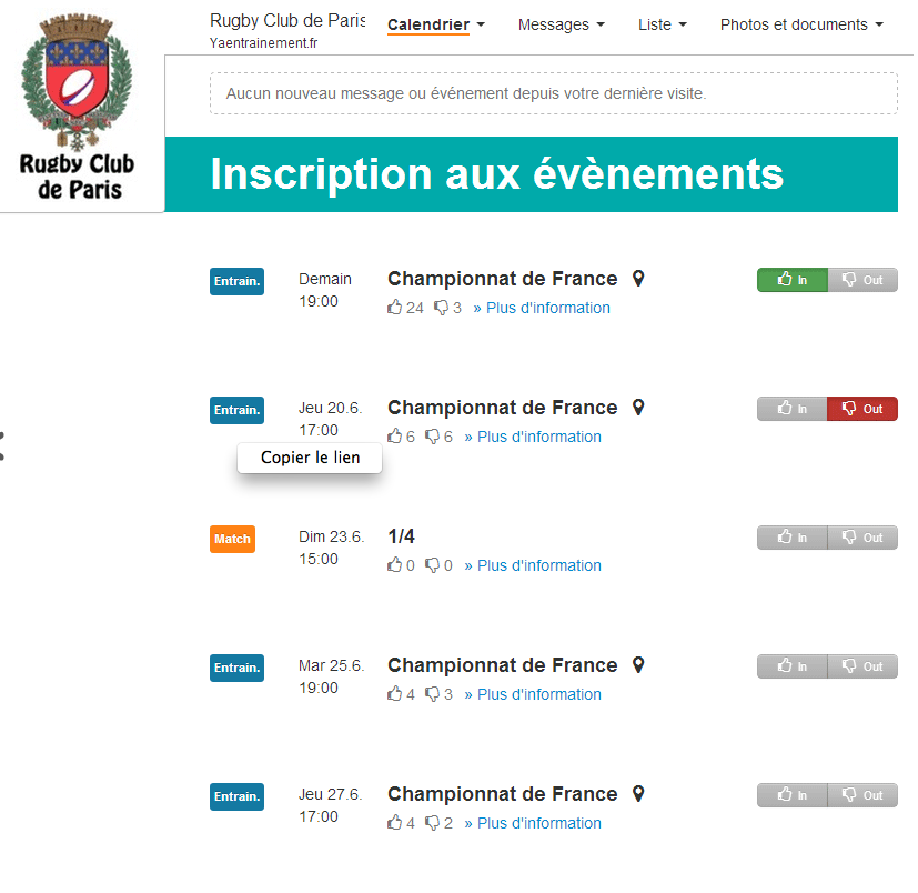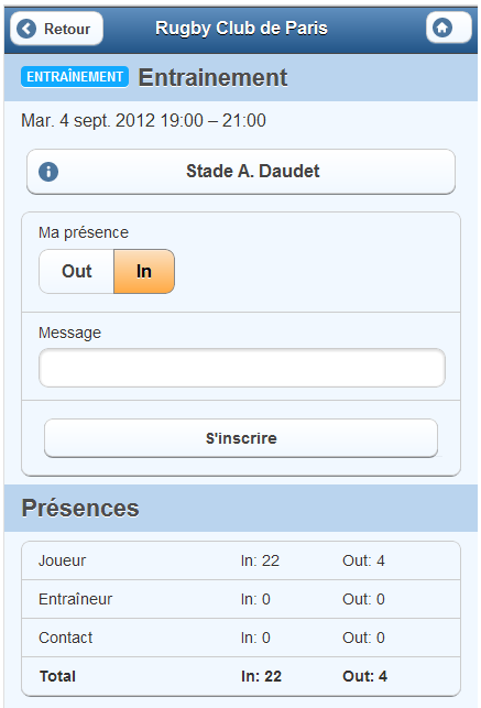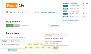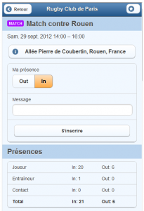 • liste de présence prévisionnelle pour les événements du club ou de l’équipe