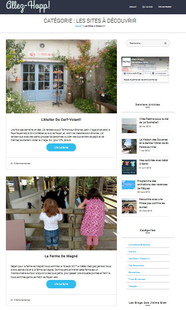 C’est pour tous les parents habitants ou vacanciers de Charente-Maritime, qu’Alice a créé le blog Allez-hopp ; elle y partage ses expériences et les découvertes de son territoire, de son département, toujours menées avec ses enfants. Des idées de sorties, de visites et d’activités testées, détaillées et bien souvent approuvées.