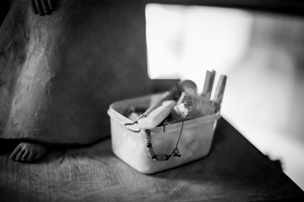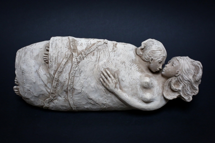 Fées, princesses, reines aux allures sauvages, simples femmes ou mères, le corps s’enveloppe et se protège dans un cocon d’argile ou s’enracine dans la terre.