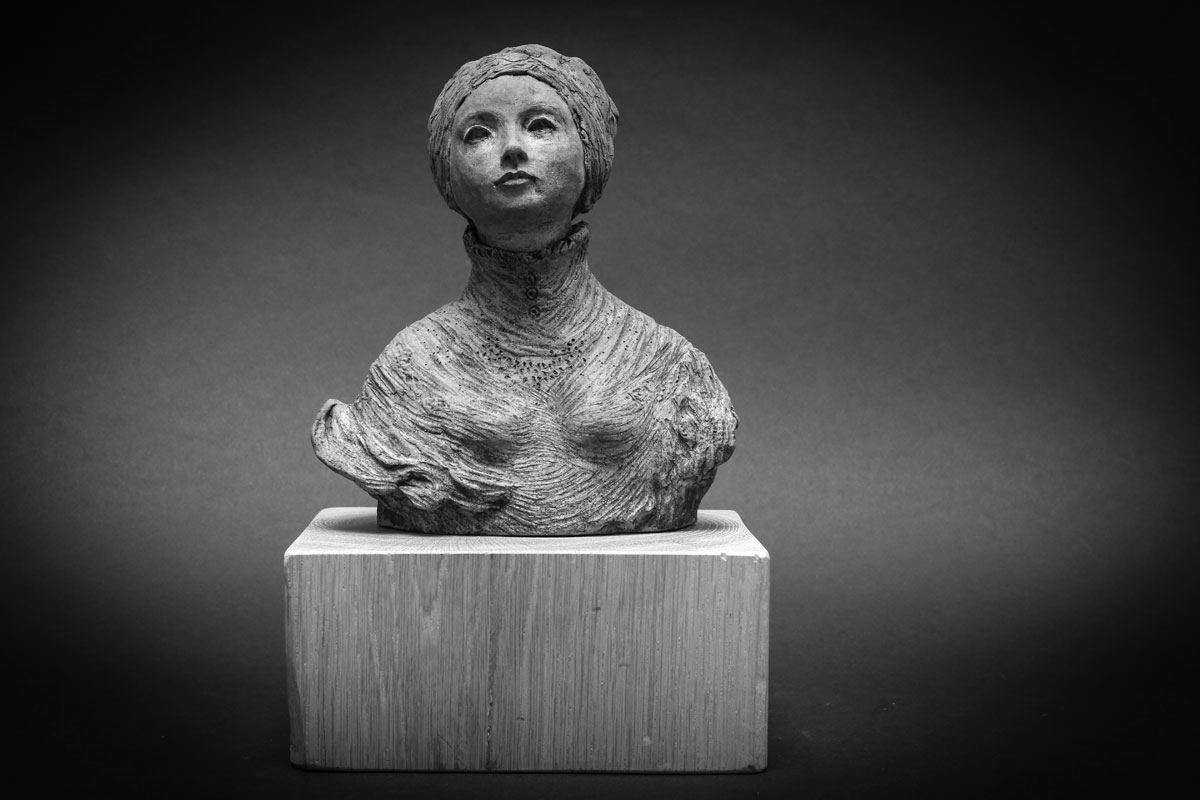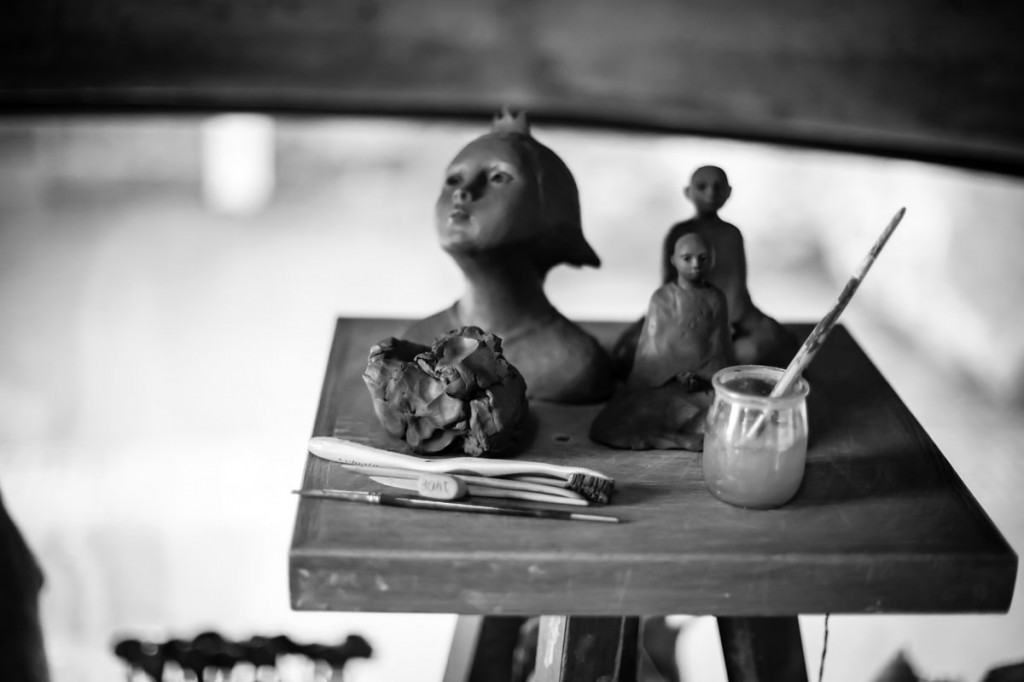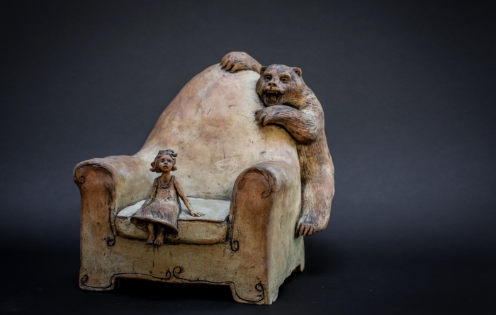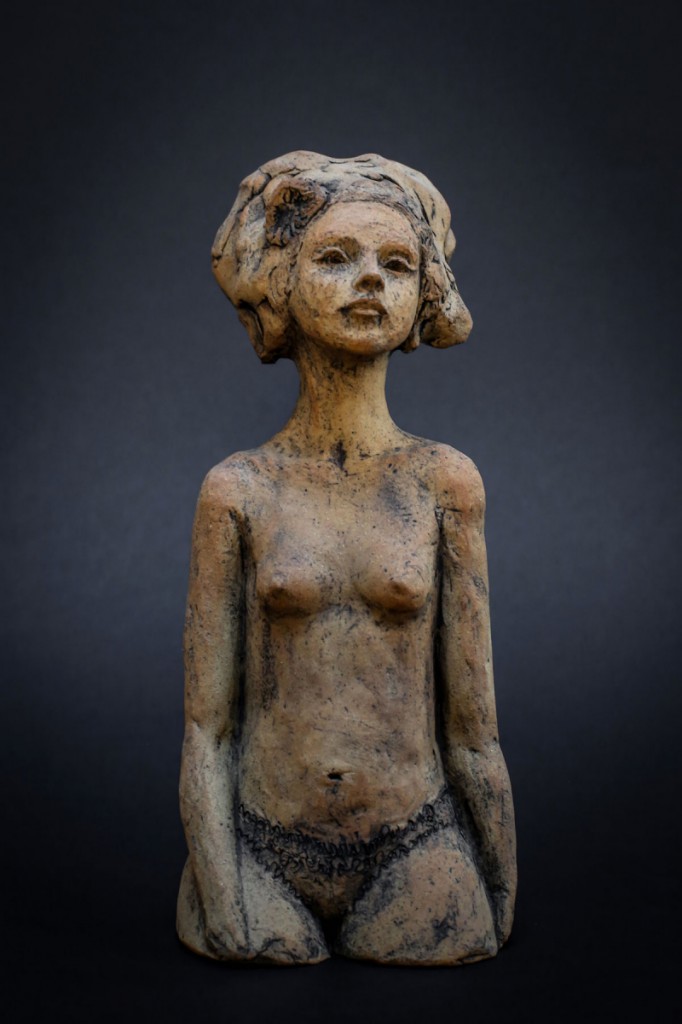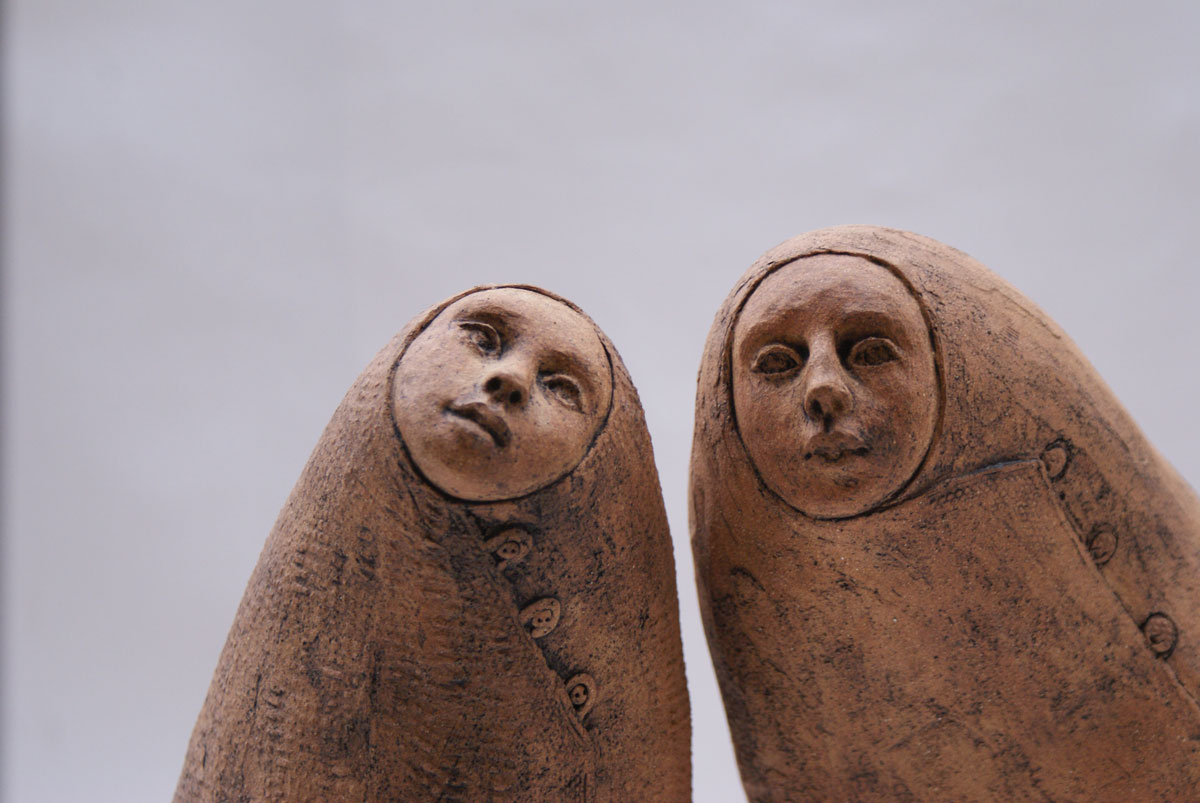 Sous ses doigts, l’argile se transforme en un univers intime, comme sorti d’un conte sans âge et sans époque, où se mêlent douceur et mélancolie.