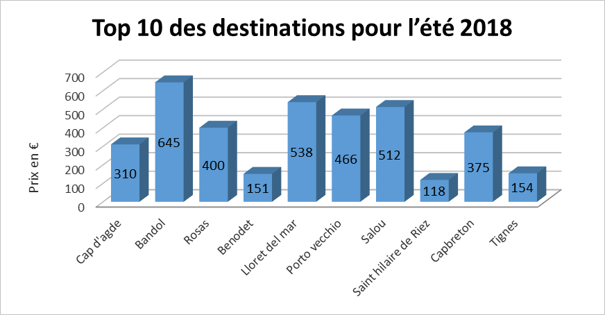 Le prix moyen constaté sur l’été 2018 est de 713 € soit une hausse de 5% par rapport à l’été 2017 (680 €).
