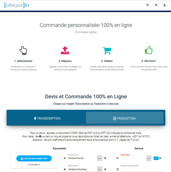 Nous souhaitions faire d’Ubiqus IO un site marchand de référence, mais aussi une vitrine technologique de notre savoir-faire dans les domaines de l’IA adaptée à nos deux métiers de cœur, Traduction et Transcription.