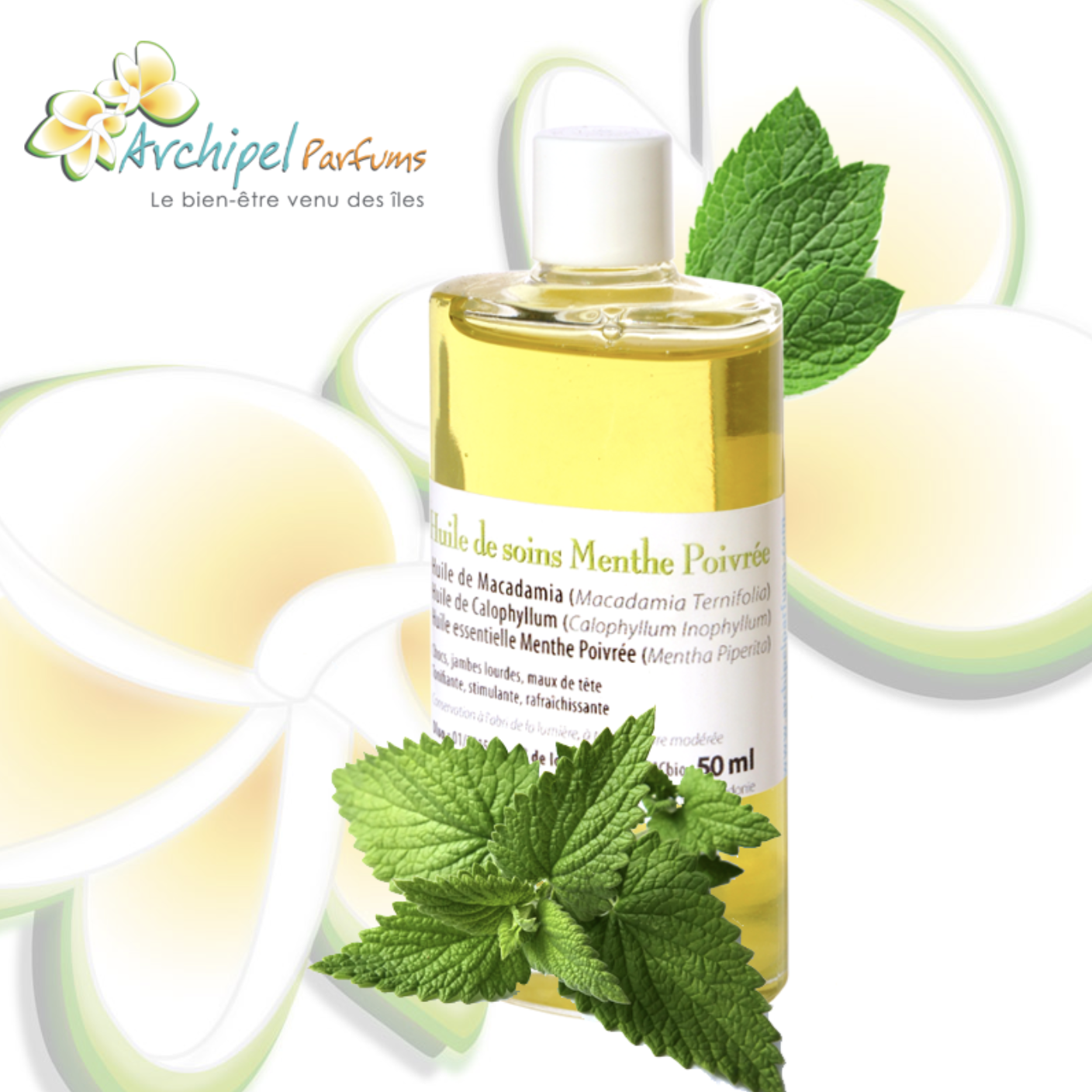Fruit d’une parfaite synergie entre les huiles de soin d’origine biologique de Calophyllum (Tamanu), de Macadamia et l’huile essentielle de Menthe Poivrée, l’Huile de soin Menthe Poivrée d’Archipel Parfums est aussi réparatrice qu’hydratante. Appliquée en massage sur les points du corps à soulager, elle agit contre la fatigue physique et nerveuse, anesthésie les douleurs dues aux chocs et coups et apaise les jambes lourdes.