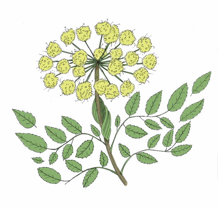- d’une goutte dorée pour symboliser le miel et l’eau nécessaire aux cultures